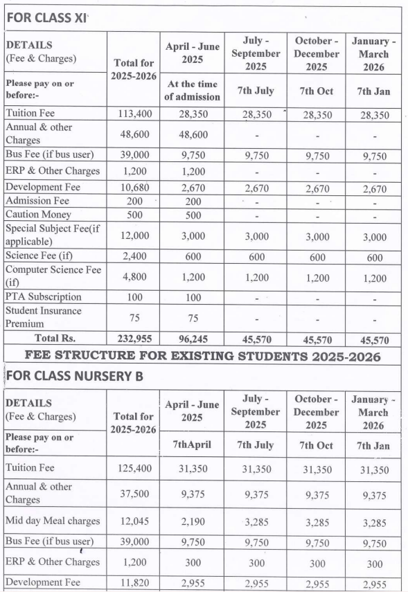 | Grades | Nursery to Grade 12th |