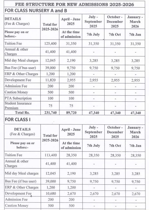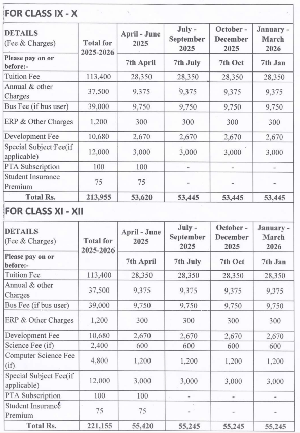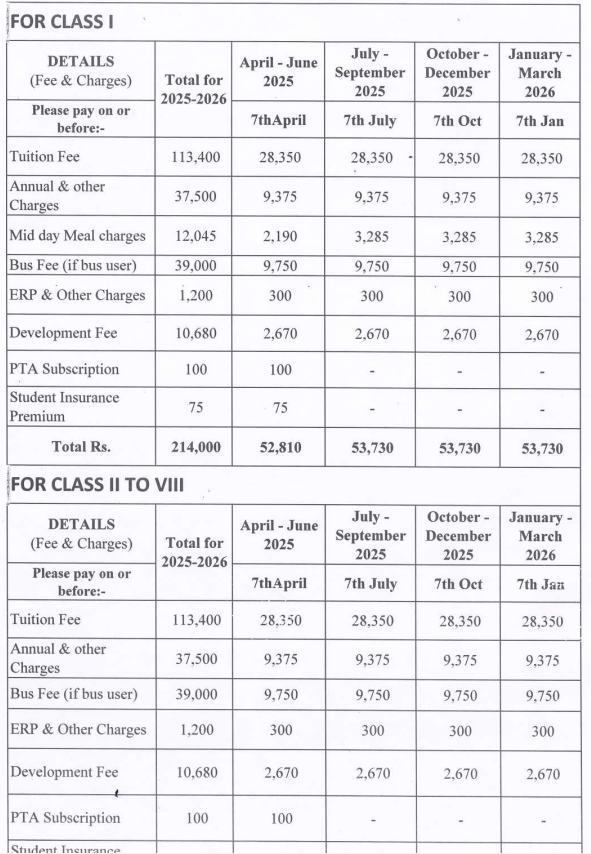 | Grades | Pre-Primary to Grade 12th |