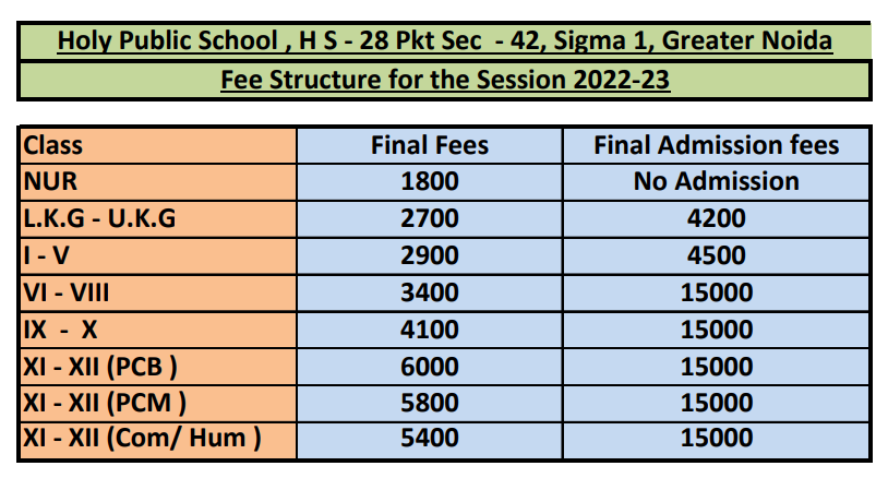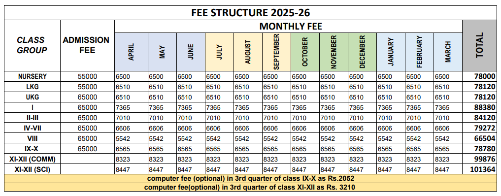 The fee from Grade 11 up to Grade 12 ranges from INR 5,300 to 6000 per month.