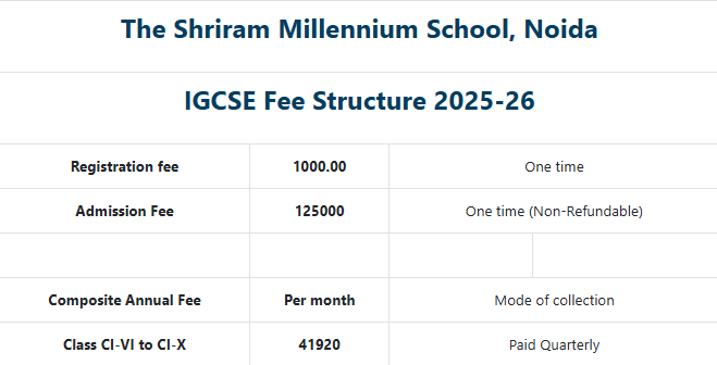 The fee from Grade 9 up to Grade 10 stands at INR 3,780 per month.