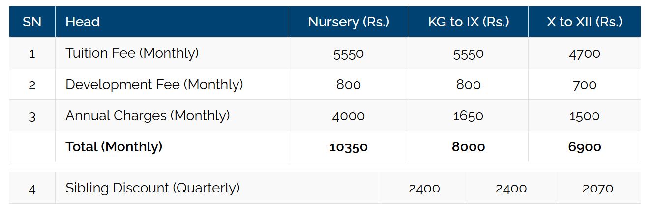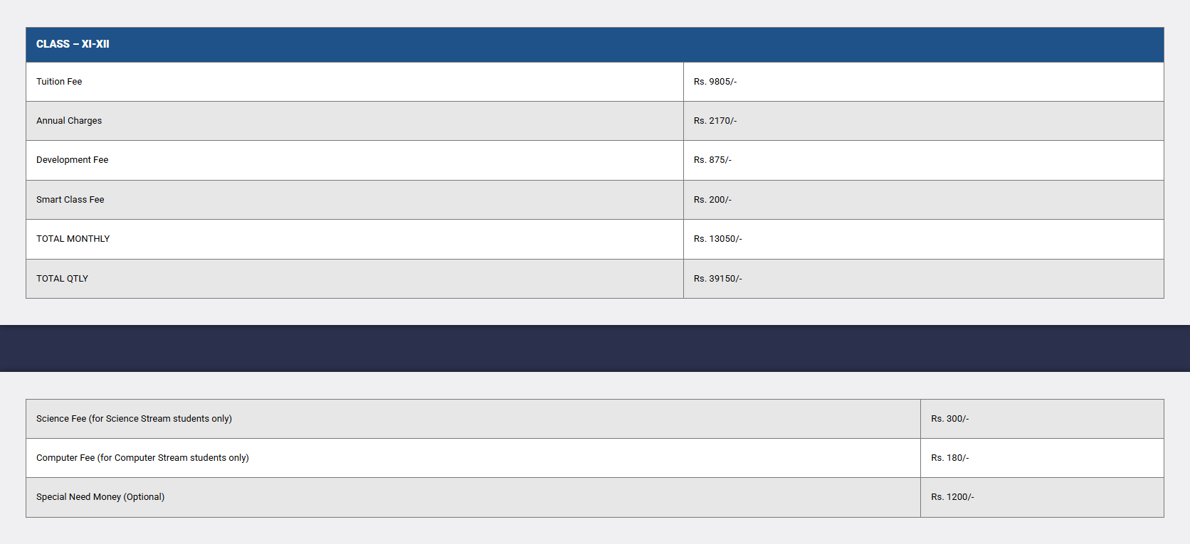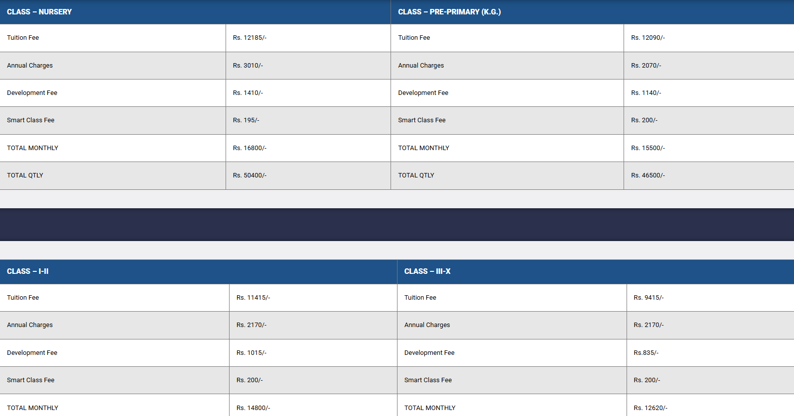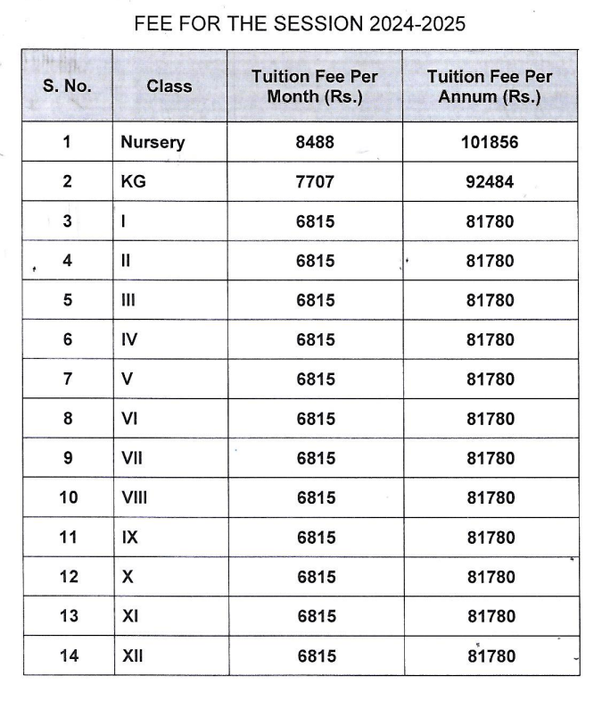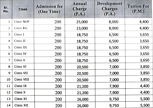 Fee Structure of Bhai Parmanand Vidya Mandir