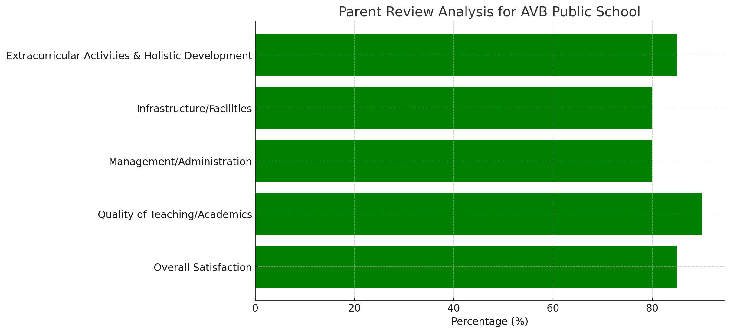 Infrastructure/Facilities: 80% praise clean, well-equipped classrooms, AC, STEM and digital infrastructure, secure environment, and up-to-date activity spaces. Few wish for even more advanced labs or highlight premium-fee expectations.