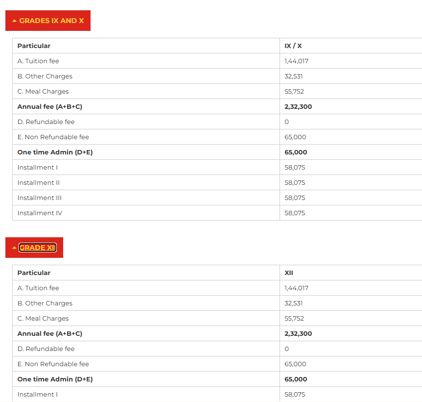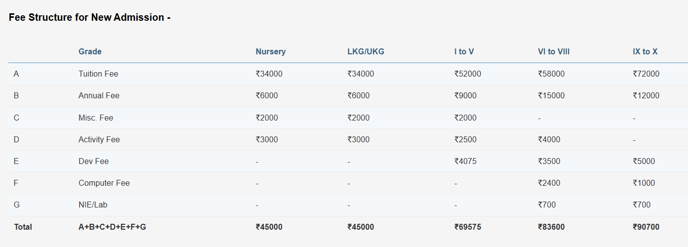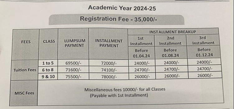 Fee Structure of Sanskriti School