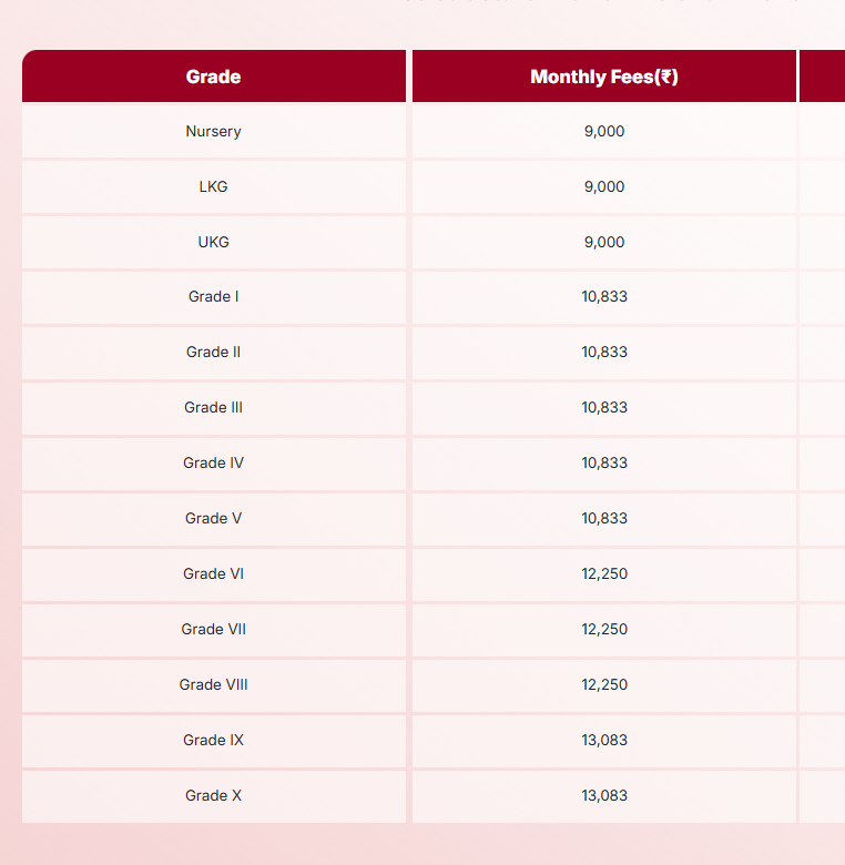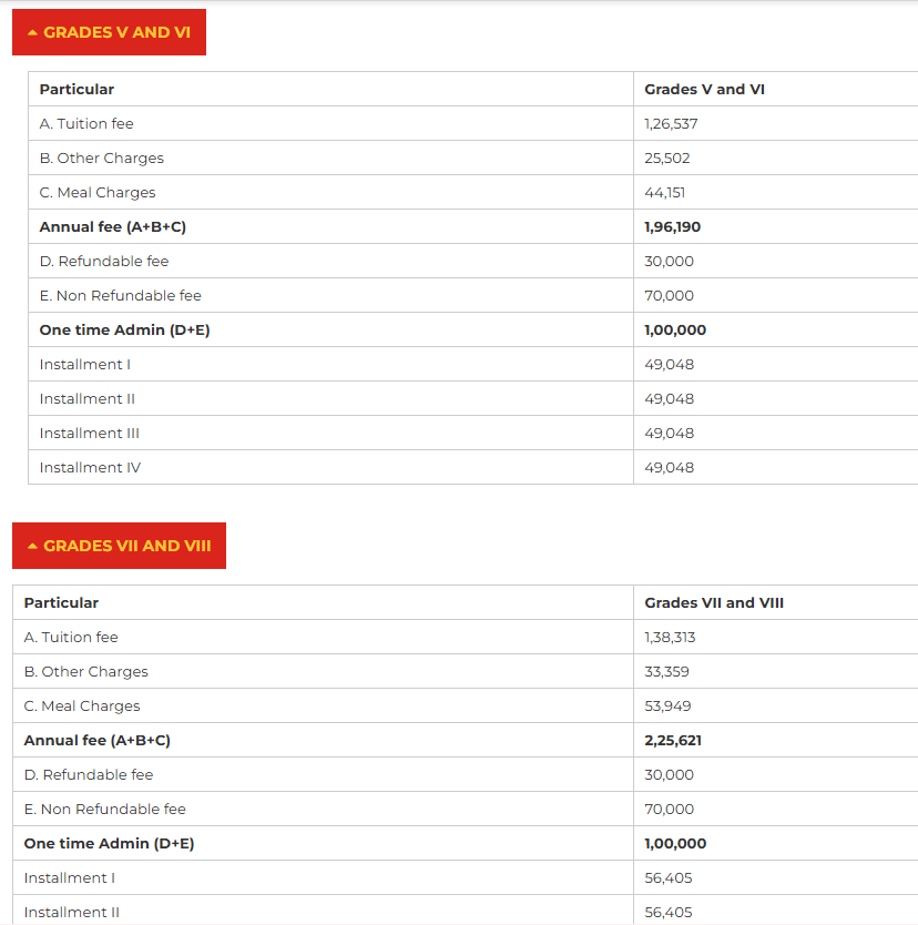 Fee Structure of The Bishop's Co-Ed School