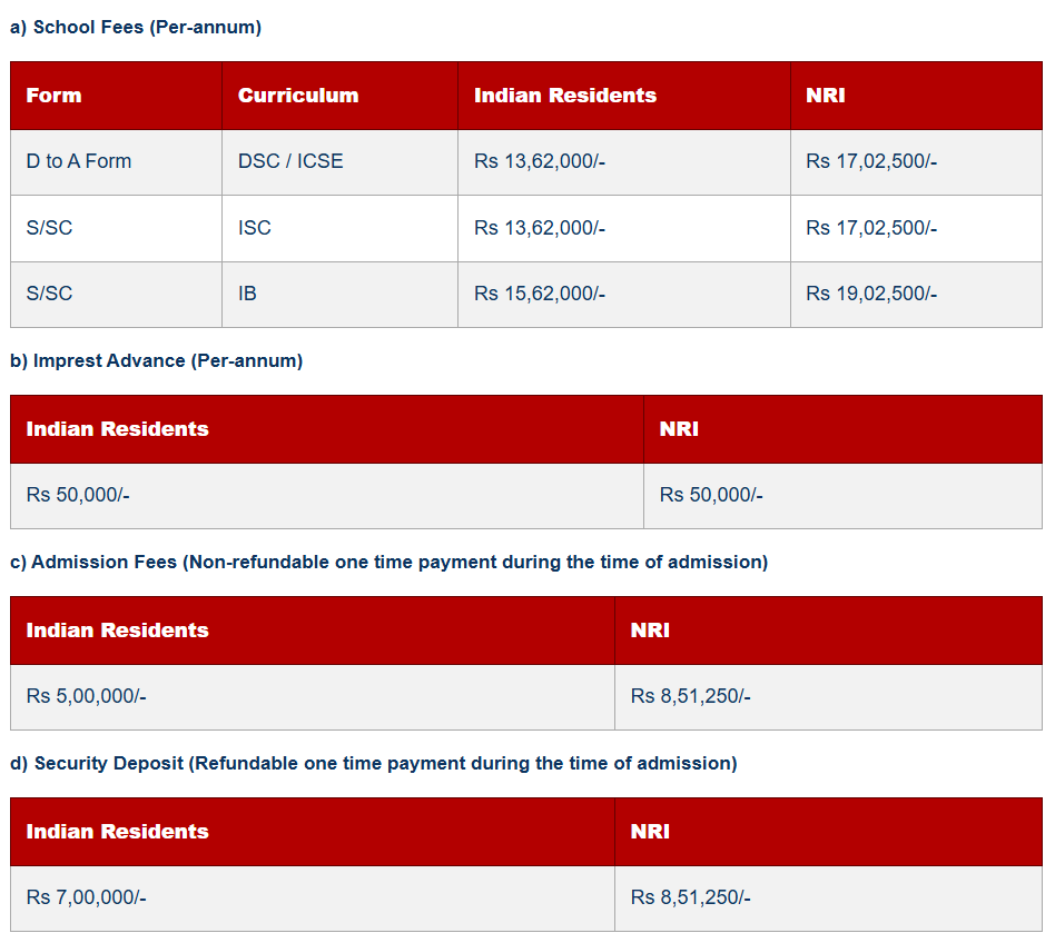 Below is the fee structure of the school; you will get the answer why this is one of the most expensive schools in India. Registration- Boys can be registered from the day they are born, up until the day .