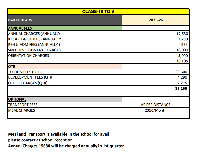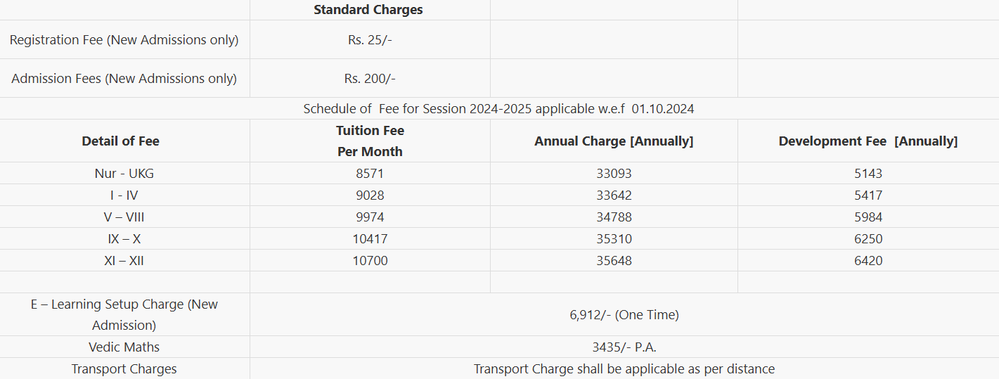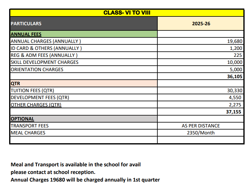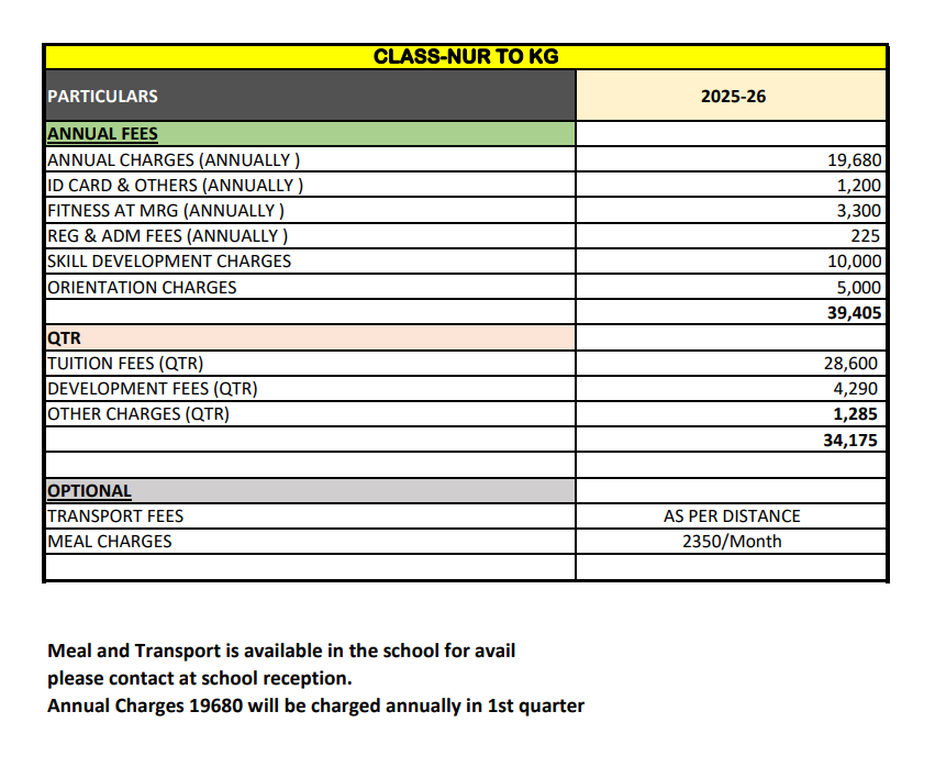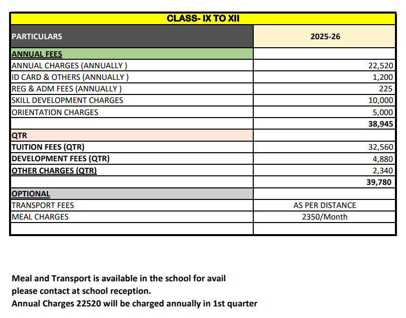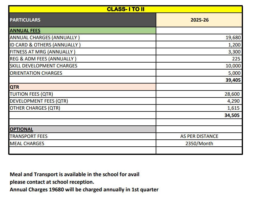 | Facilities | Well-equipped classrooms, laboratories, library, sports facilities, auditorium, transportation services |
