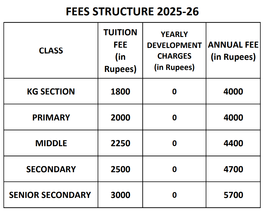 | Facilities | Labs, Library, Art and Craft, Dance and Music, Sports |