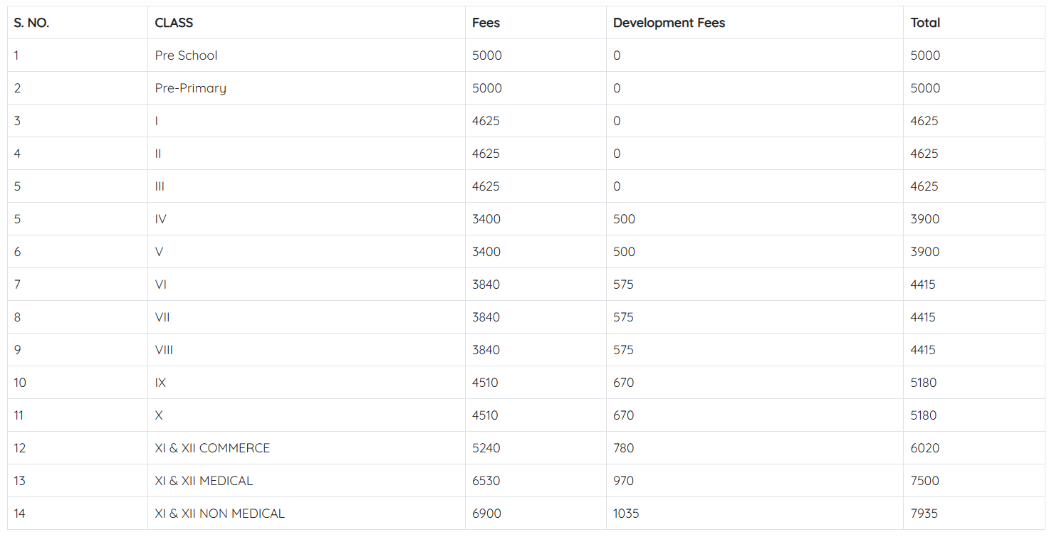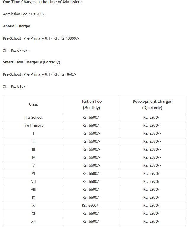 | Facilities | Labs, Smart Classes, Library, Multipurpose hall, Art Room, Dance and Music Room, Auditorium, Cafeteria, Health Clinic |